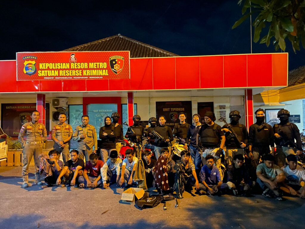 Dari kegiatan tersebut, Tim CRT Polres Metro yang bersama juga dengan Sat Pol PP Kota Metro membubarkan dan mengamankan belasan remaja beserta sarung dan ikat pinggang besi di Jl. Soekarno Hatta kel. Ganjaragung Kec. Metro Barat.