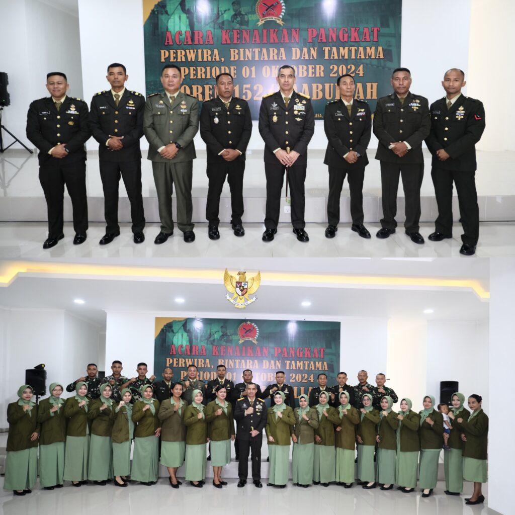 Korem 152/Baabullah menggelar upacara kenaikan pangkat Perwira, Bintara Dan Tamtama Korem 152/Baabullah serta jajaran periode 1 Oktober 2024 yang bertempat di Aula Singa Baabullah Makorem,Selasa (01/10/2024).