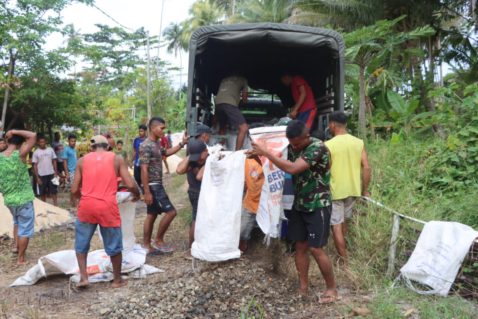Terlihat Di sekitar lokasi terasa hangat dan penuh semangat, di mana kebersamaan dan kerjasama menjadi kunci utama dalam pencapaian tujuan bersama. Setiap tindakan kecil dari setiap individu menjadi bagian dari upaya besar untuk pencapaian pembangunan infrastruktur fisik TMMD Ke-120 Kodim 1508/Tobelo.