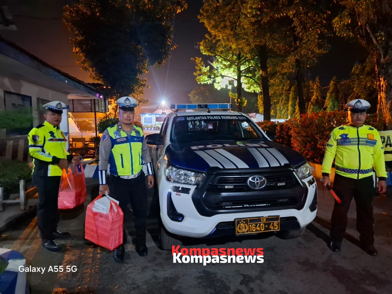 Rembang, 9 Maret 2025 – Satuan Lalu Lintas (Satlantas) Polres Rembang menggelar kegiatan Blue Light Patrol dan Sahur On The Road, dalam rangka meningkatkan keselamatan dan kenyamanan bagi masyarakat serta berbagi kasih paket sahur untuk para pengguna jalan.