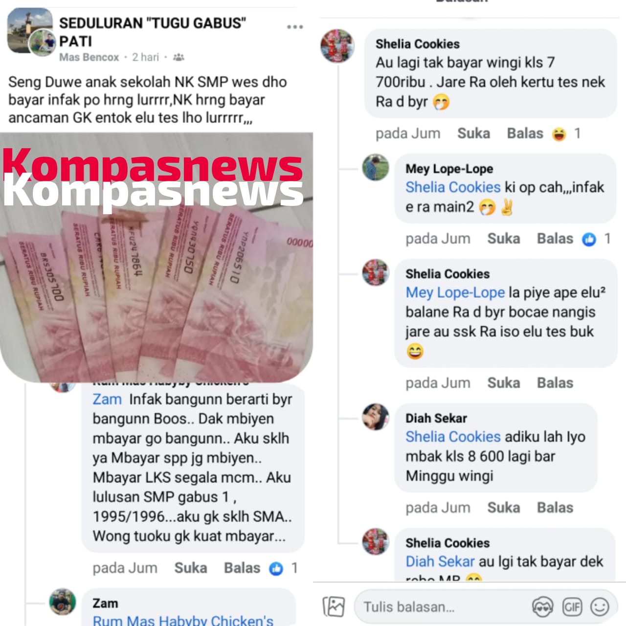 Hal itu dibuktikan oleh postingan disinyalir wali murid yang ditarik iuran tersebut, lalu memposting di sebuah grup “Seduluran Tugu Gabus Pati” pada Aplikasi Facebook. Dengan nama pemilik akun Mas Bencox.