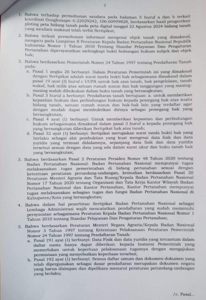 Ia juga meminta agar dilakukan audit menyeluruh terhadap setiap tahapan proses penerbitan sertifikat yang dilakukan oleh PT Bina Sarana Mekar.