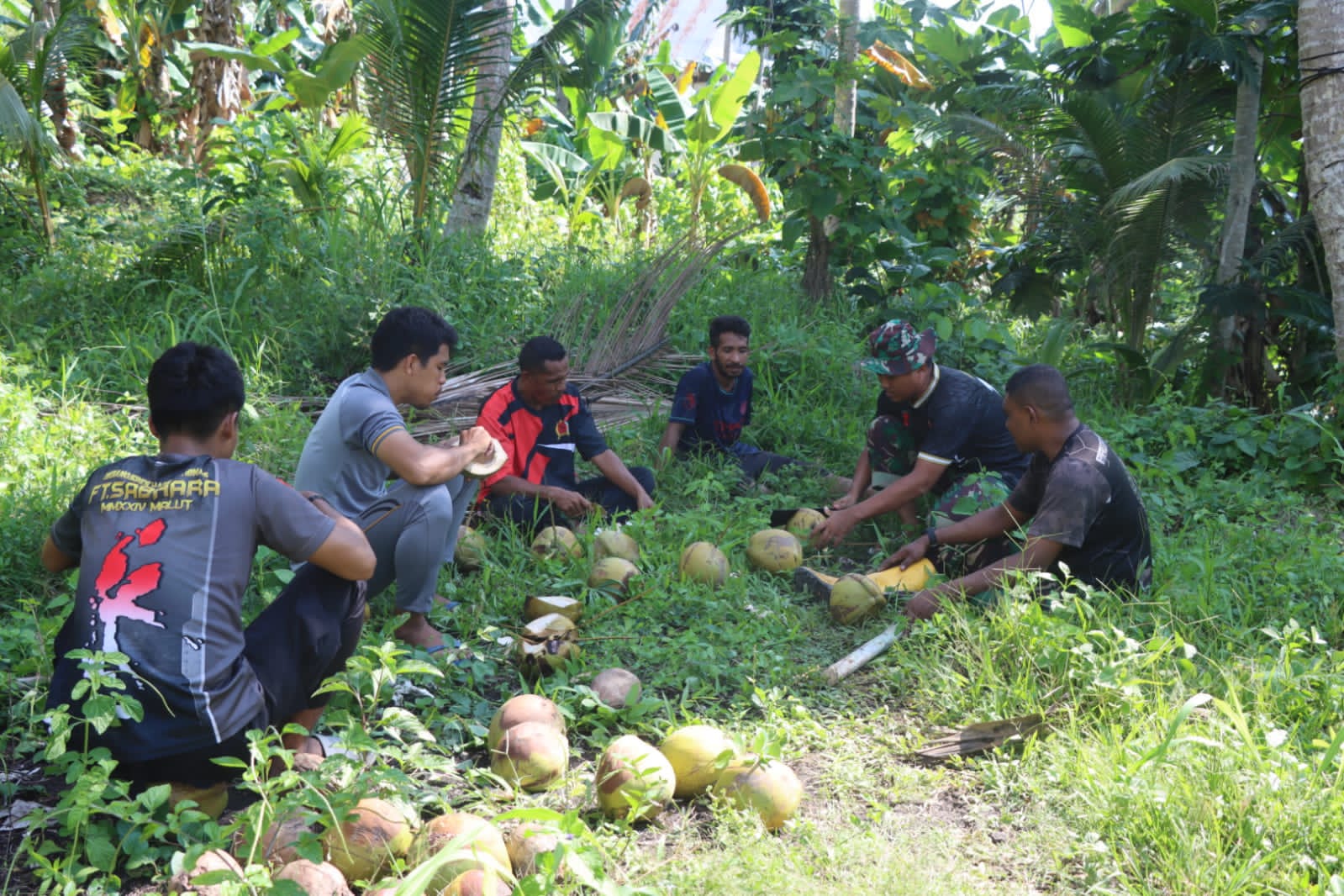 Bapak Juanes salah satu masyarakat, juga menyambut baik kehadiran para prajurit. “Kami merasa sangat terbantu dengan adanya program TMMD ini. Selain membangun desa, mereka juga menjadi bagian dari keluarga kami. Kami senang bisa berbagi kesegaran kelapa sebagai tanda terima kasih,” ungkapnya.