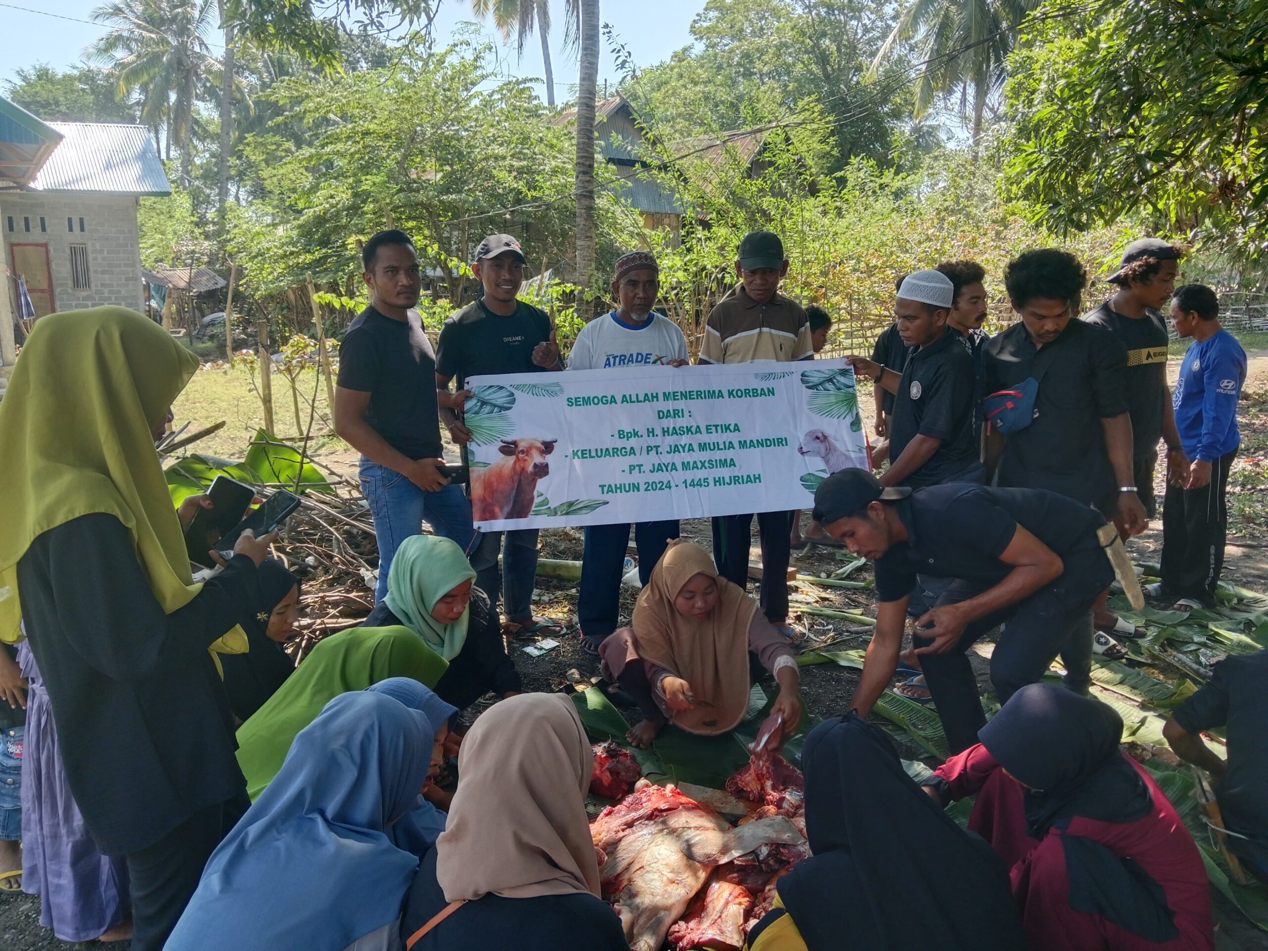 Untuk diketahui, hewan kurban jenis sapi jantan, pada hari ini, senin 17 Juni 2024 M/10 Zulhijah 1445 H, merupakan bantuan derma dari Bapak H. Haska Etika (PT.Jaya Mulia Mandiri/PT. Jaya Maxima).