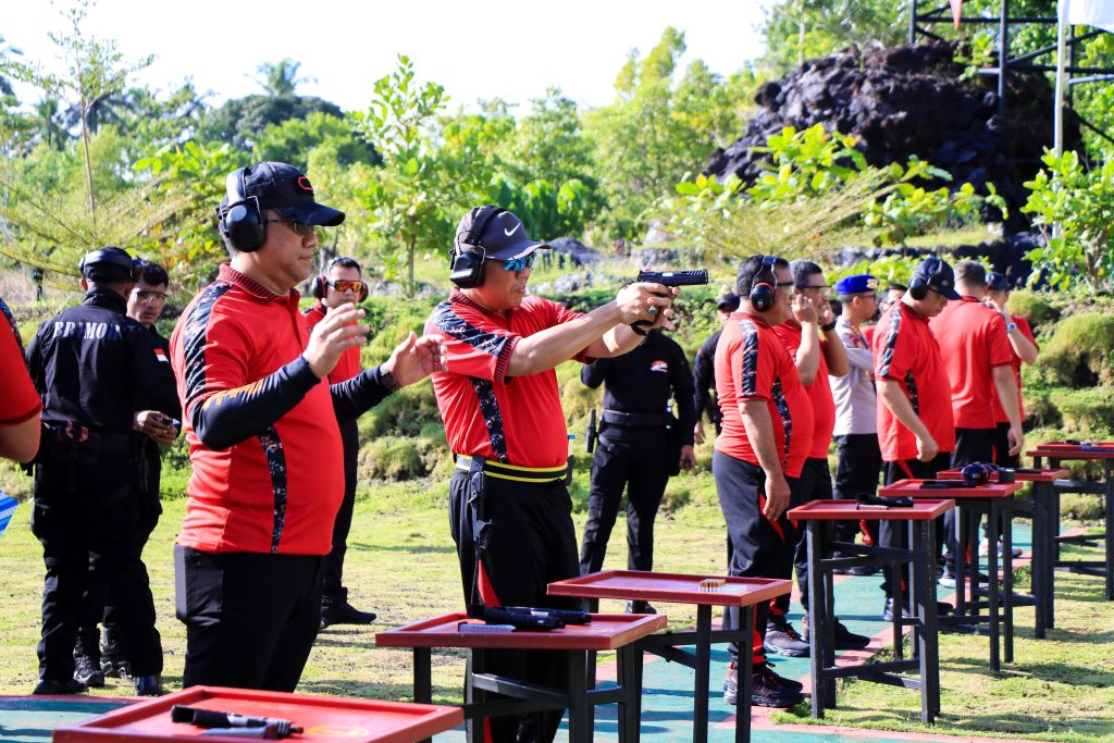 Kegiatan ini dilanjutkan dengan latihan menembak bersama pejabat utama Polda.