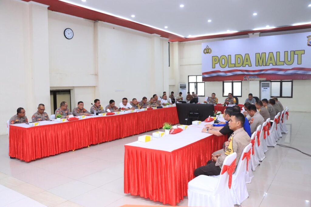 Rapat ini dipimpin oleh Wakapolda Malut Brigjen Pol. Stephen M. Napiun, S.I.K., M.Hum. dan dihadiri oleh Irwasda Polda Malut Ramon Zamora Ginting, S.I.K. serta sejumlah pejabat utama Polda Maluku Utara, Kapolres jajaran.