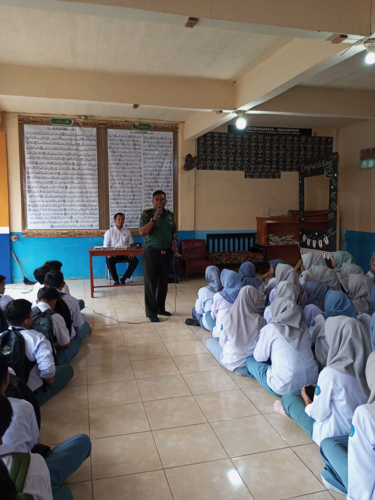 Kabupaten Bekasi – Pada hari Senin, 23 September 2024, pukul 13.55 WIB, Bhabinkamtibmas Desa Wibawa Mulya, Aipda Karyono SH, bersama Pelda Prasetyo dan Pak Yan, seorang guru, menggelar kegiatan bimbingan dan penyuluhan (binluh) di Sekolah Darul Mutaqkin, Kp. Leuwi Malang, Desa Wibawa Mulya, Kecamatan Cibarusah. Kegiatan ini dihadiri oleh para siswa-siswi sekolah tersebut.