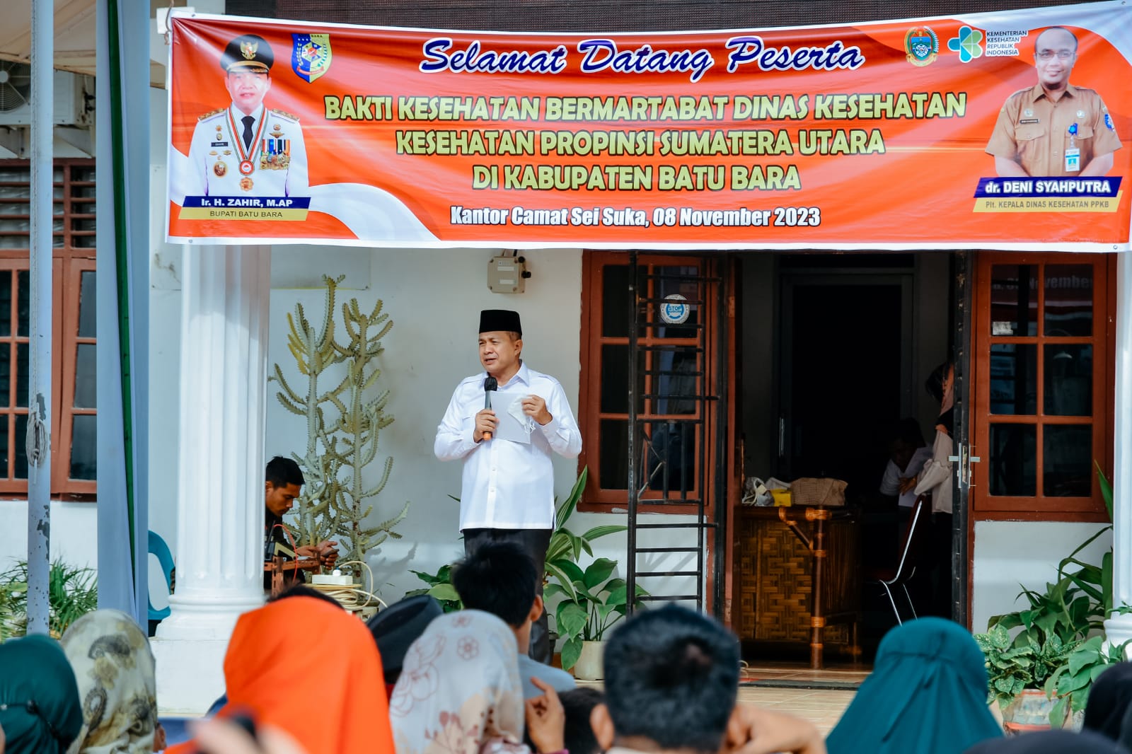 Pernyataan itu disampaikan Bupati Zahir saat membuka pelayanan kesehatan yang berkolaborasi dengan Pemerintah Provinsi Sumatera Utara dalam rangka memperingati Bulan Bakti Kesehatan yang berlangsung di halaman Kantor Camat Sei Suka, Rabu, 08/11/2023.