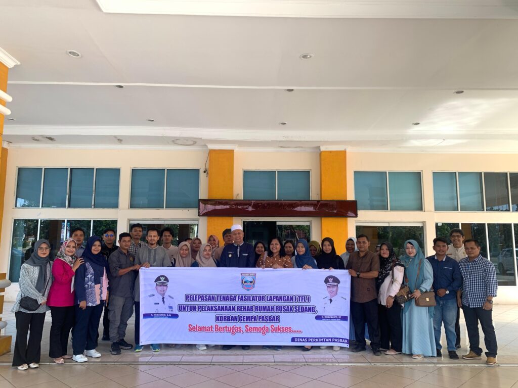 Pasbar, kompasnews.co.id Bupati Pasaman Barat (Pasbar) Hamsuardi didampingi Kepala Dinas Perumahan, Kawasan Pemukiman dan Pertanahan, Asri Hamdi dan Sekretaris Fahrul Sani serta stakeholder terkait melepas Tenaga Fasilator Lapangan (TFL) untuk pelaksanaan Rehab Rumah Rusak Sedang korban Gempa Pasbar, Jumat (19/4) di lobi kantor bupati setempat.