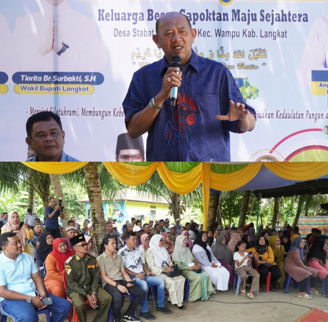 Langkat Sumut || Bupati Langkat H. Syah Afandin, SH bersama Wakil Bupati Tiorita Br. Surbakti menghadiri acara Halal Bihalal Keluarga Besar Gabungan Kelompok Tani (Gapoktan) Maju Sejahtera di Desa Stabat Lama Barat, Kecamatan Wampu, pada Minggu (6/4/2025).