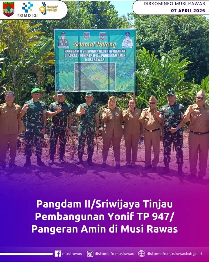 Kunjungan tersebut turut dihadiri Bupati Musi Rawas, Sekretaris Daerah Musi Rawas, Dandim 0406, serta para Kepala Organisasi Perangkat Daerah (OPD) di lingkungan Pemerintah Kabupaten Musi Rawas.