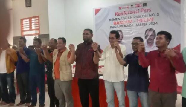 Pasangan Calon urut 03 Bupati dan Wakil Bupati Kabupaten Halmahera Selatan (Halsel) Hasan Ali Bassam Kasuba dan Helmi Umar Muchsin resmi menggelar konferensi pers kemenangan, pada Kamis (28/11/2024).