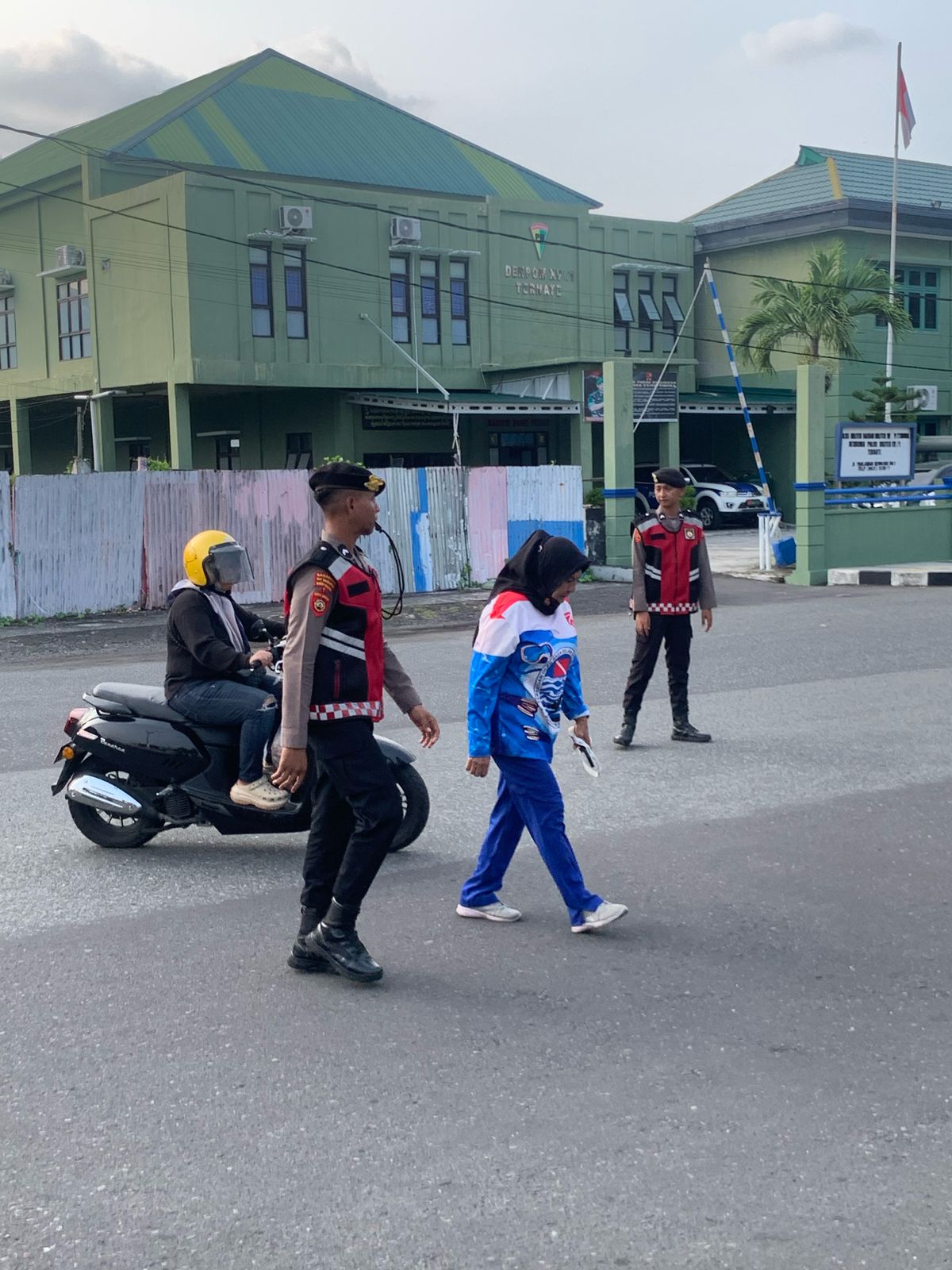 Direktorat Samapta Polda Maluku Utara menggelar kegiatan pengaturan lalu lintas (Gatur) di sekitar Landmark Ternate dan depan Masjid Al-Munawar, Kota Ternate, pada Selasa (4/3/2025).