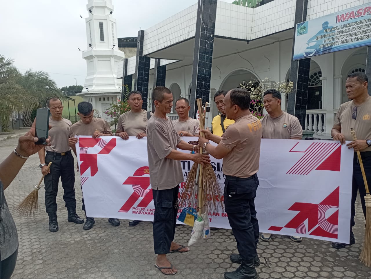 Dalam rangka menyambut HUT Bhayangkara ke-79 tahun 2025, Polres Langkat melalui Polsek Pangkalan Brandan melakukan Kurple bersih-bersih tempat rumah ibadah Masjid dan Gereja di tiga kecamatan yakni kecamatan Babalan, Sei Lepan dan Brandan Barat Kabupaten Langkat Sabtu (14/6/2025) sekira pukul 09.00 WIB pagi.