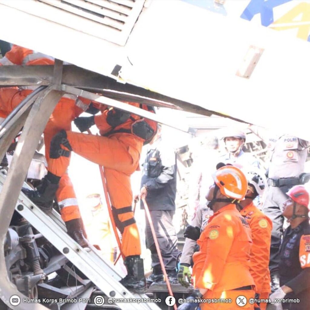 Komandan Satuan Brimob Polda Jabar Kombes Pol. Yuri Karsono, S.I.K., menerjunkan pasukannya untuk menolong dan mencari para korban kecelakaan kereta api yang bertabrakan serta pengamanan area dan mensterilkan wilayah sekitar TKP. Kab. Bandung – Jawa Barat, 05/01/2024.