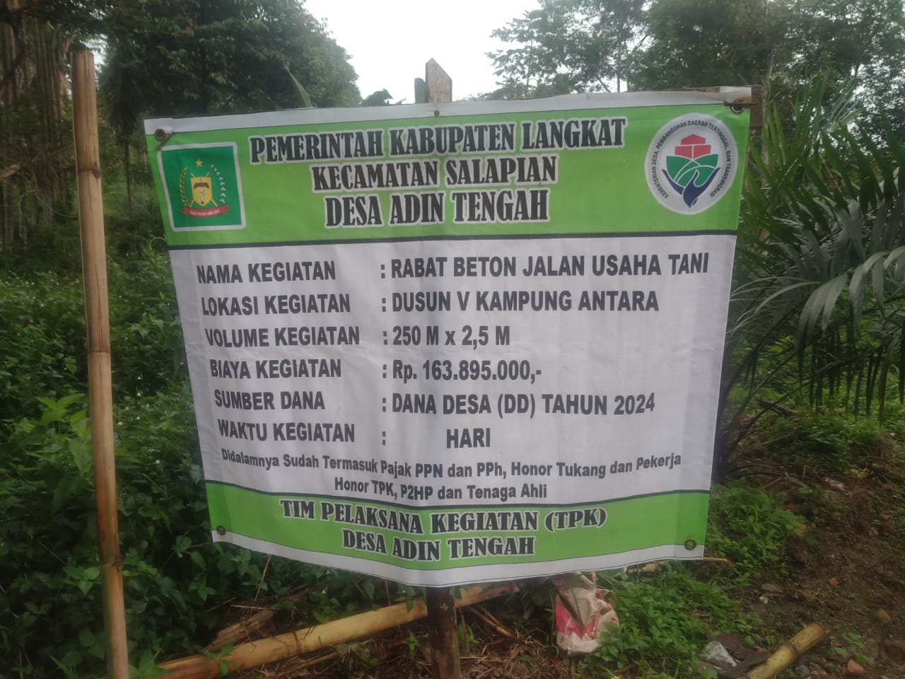 Langkat, dengan memanfaatkan bantuan Dana Pemerintah, Desa Adin Tengah melaksanakan Amanah untuk warganya dengan membangun sarana jalan.