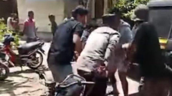 Seorang pria yang diduga Orang Dengan Gangguan Jiwa (ODGJ) berinisial Suh (50) membacok seorang warga dan seorang personel polisi berinisial Aipda SP (48) saat hendak diamankan.