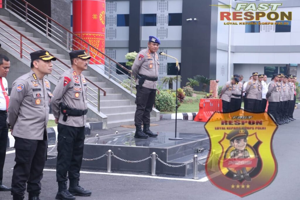 Palembang – Kombes Pol Drs. Andreas Kusnaedi M,M Dir Polairud Polda Sumsel, memimpin apel pagi di lapangan Apel Mapoldal Golden Km 4.