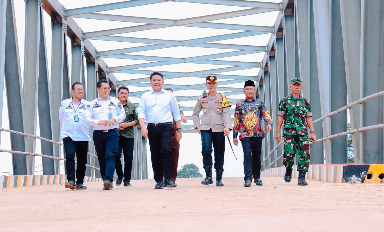 MUSI RAWAS-Kapolres Musi Rawas (Mura), AKBP Andi Supriadi SH, SIK, MH, menghadiri langsung Peresmian Jembatan Teras dan Jembatan Air Keruh di Kecamatan BTS Ulu, Kabupaten Mura oleh, Gubernur Sumsel, H Herman Deru, Rabu (19/3/2025).