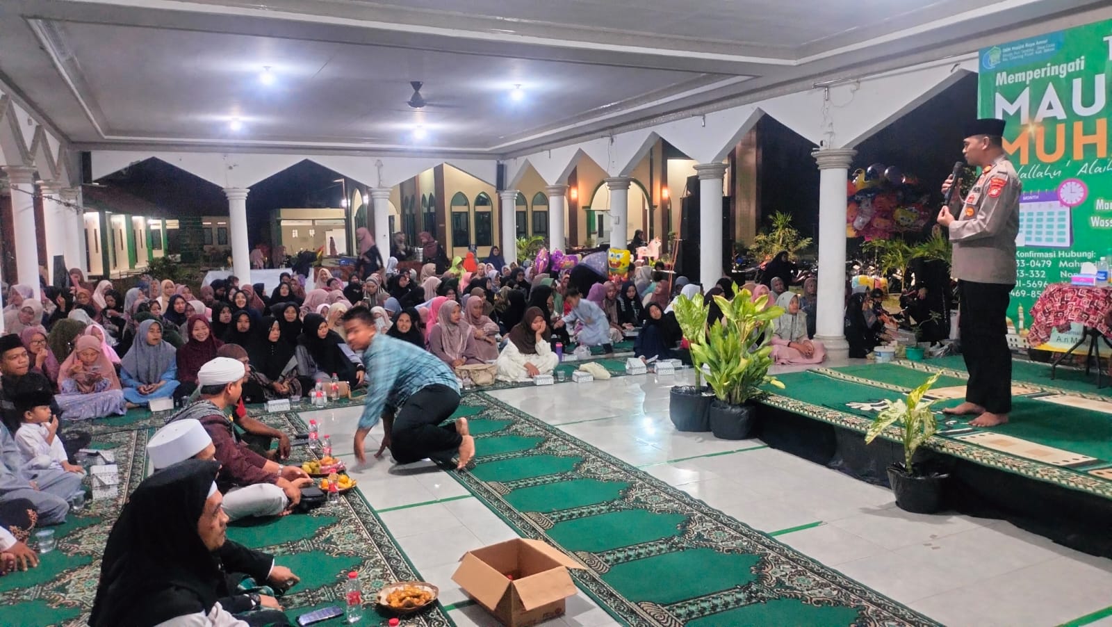 Acara berlangsung dengan penuh khidmad dan khusyu, yang dihadiri oleh ratusan warga setempat dengan mengusung tema “Meneladani Akhlak Nabi Muhammad SAW dengan Menjalani Kehidupan Sesuai Aturan”.