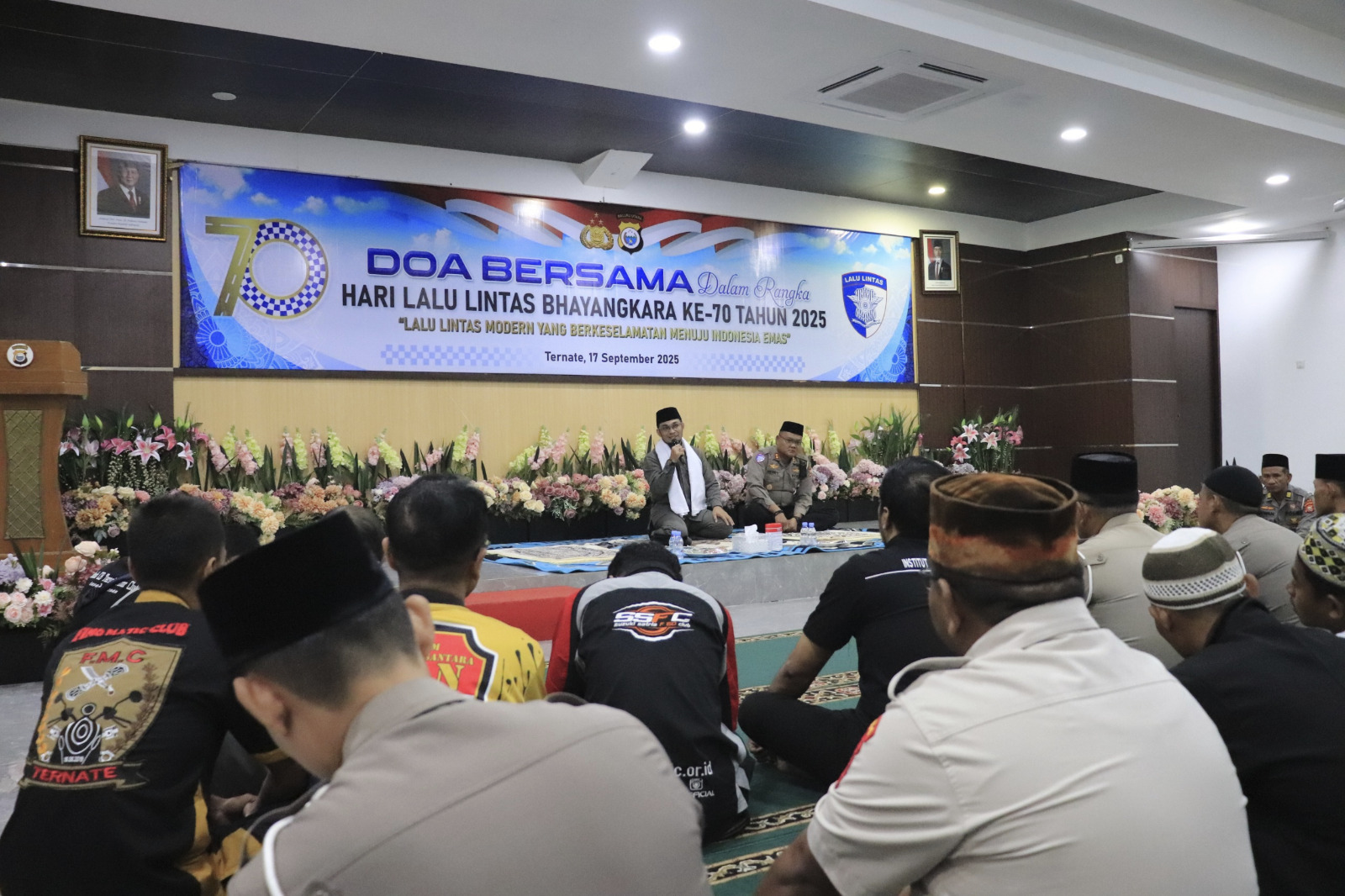 Dalam rangka memperingati Hari Lalu Lintas Bhayangkara yang ke-70, Direktorat Lalu Lintas Polda Maluku Utara menggelar doa bersama. Kegiatan yang mengusung semangat mempererat tali silaturahmi ini berlangsung khidmat di Aula Patriatama Ditlantas Polda Malut, Rabu (17/9) kemarin.