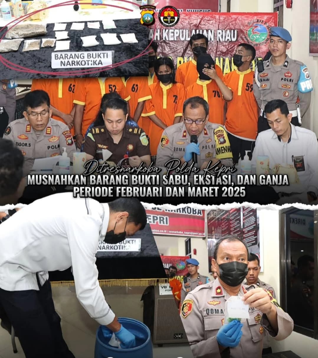 DITRESNARKOBA POLDA KEPRI MUSNAHKAN BARANG BUKTI SABU, EKSTASI, DAN GANJA PERIODE FEBRUARI DAN MARET 2025