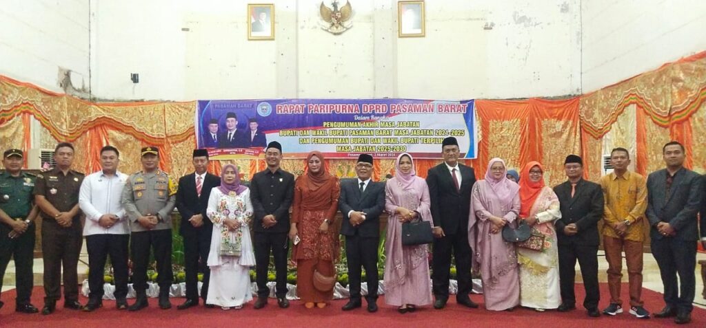 Dewan Perwakilan Rakyat Daerah (DPRD) Pasaman Barat (Pasbar) menggelar rapat paripurna untuk mengumumkan akhir masa jabatan Bupati dan Wakil Bupati Pasaman Barat periode 2021-2025 sekaligus pengumuman Bupati dan Wakil Bupati terpilih untuk masa jabatan 2025-2030 pada Senin (3/3/2025) di Aula Kantor DPRD setempat.