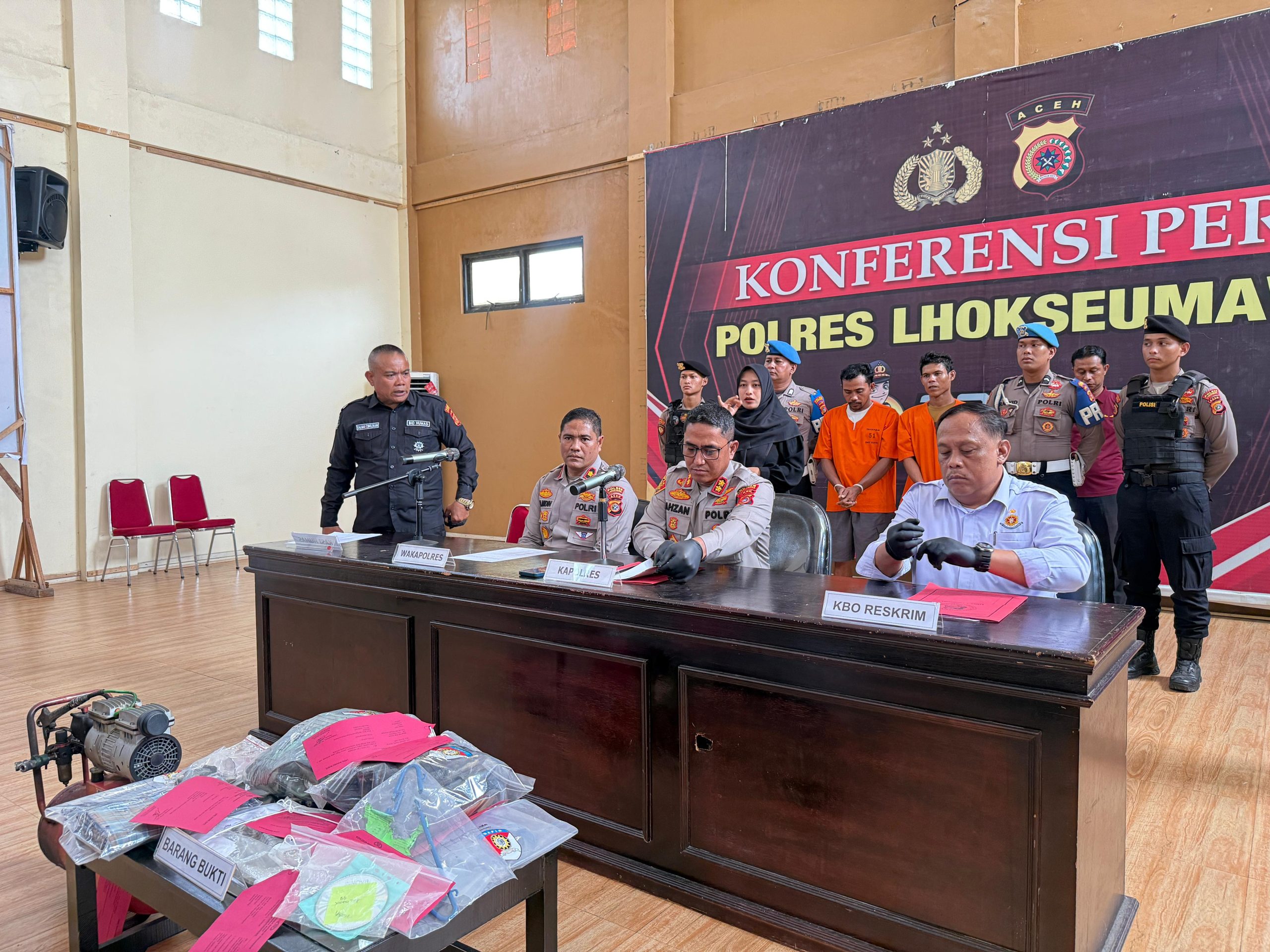 Dalam konferensi pers tersebut, turut hadir Wakapolres Lhokseumawe Kompol Salmidin., S.E., M.M, KBO Reskrim Iptu Edi, serta Kasi Humas Polres Lhokseumawe Salman Alfarasi., S.H., M.M.