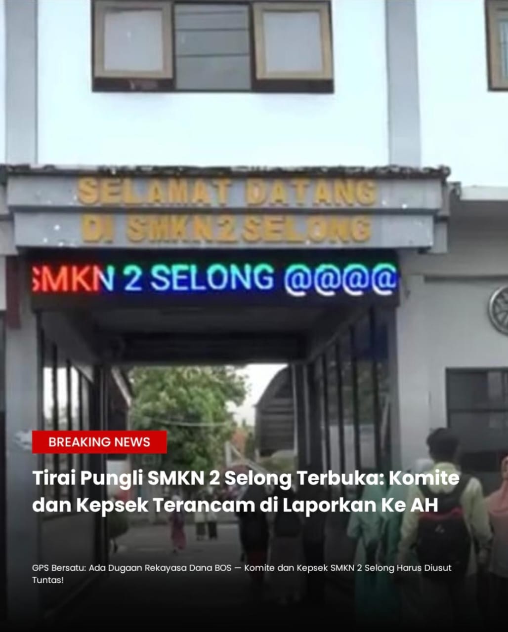 Lombok Timur — Dugaan praktik pungutan liar (pungli) dengan pola yang sistematis dan terstruktur kembali mencuat di lingkungan pendidikan Kabupaten Lombok Timur. Kali ini, SMK Negeri 2 Selong menjadi sorotan tajam setelah Gerakan Pemuda Sasak Bersatu (GPS Bersatu) membeberkan indikasi pungli yang dibungkus rapi dengan istilah Sumbangan Pembiayaan Pendidikan melalui komite sekolah.