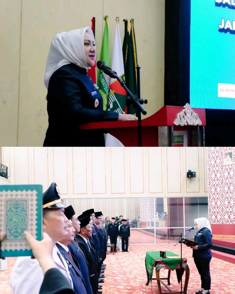 H.Ratna Machmud Bupati Musi Rawas Lantik 12 pejabat Pimpinan Tinggi Pratama atau setingkat eselon II dan 2 pejabat administrato