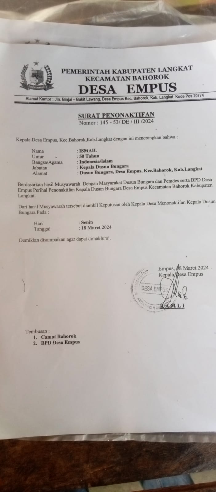 Langkat, oknum Kades Desa Empus yang ber inisial R