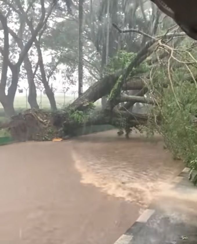Ketua RT 07, Rudi Musa, menjelaskan bahwa tumbangnya pohon tua yang berada di bahu jalan menuju Bandara Sultan Baabullah disertai banjir setinggi lutut.