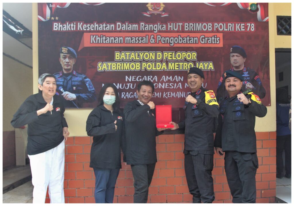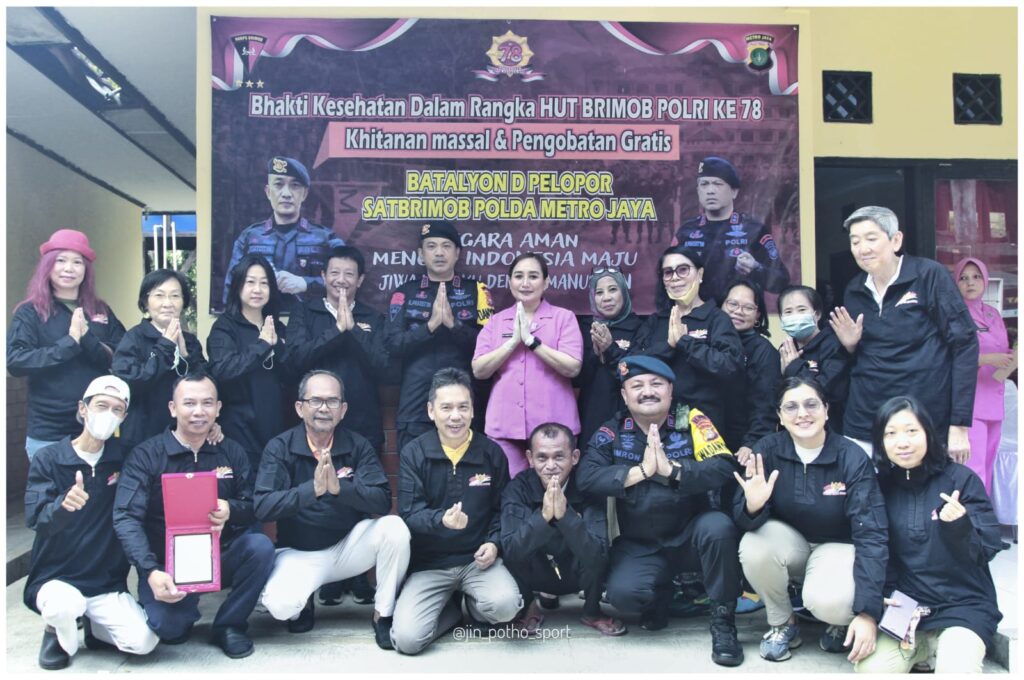 Dalam pantauan media, giat sosial sunatan massal dan pengobatan gratis ini merupakan kerjasama antara Batalyon D Pelopor Satbrimob Polda Metro Jaya dengan JT Klinik dr. Djuni Tjahyati, Yayasan Sri Satya Sae, Pasar Baru Jakarta Pusat.