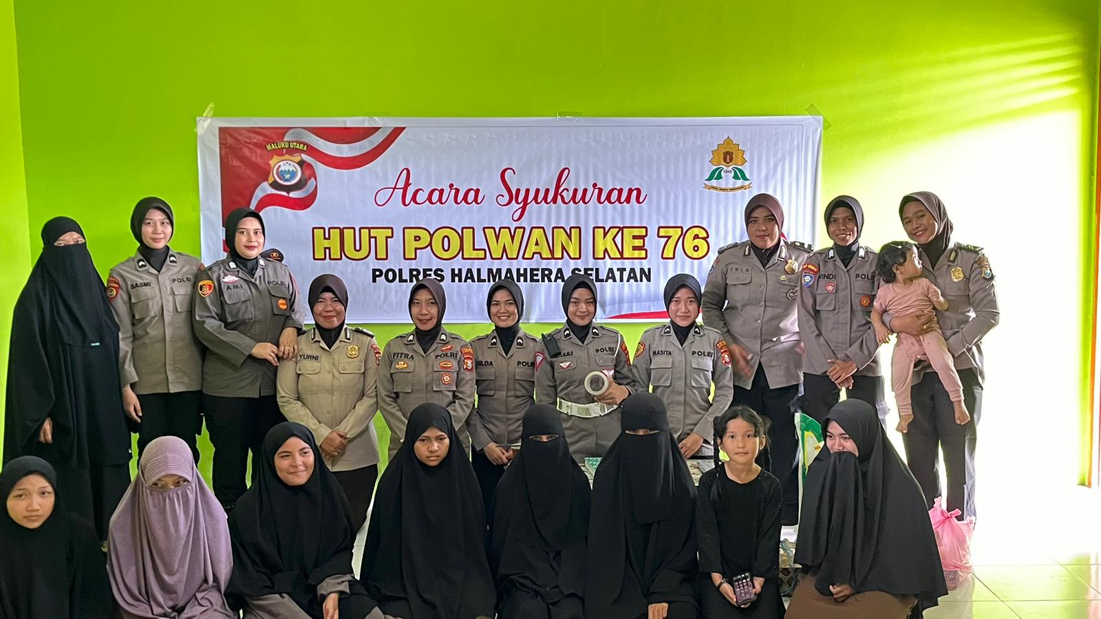 Dalam rangka memperingati Hari Jadi ke-76 Polwan Republik Indonesia, Polwan Polres Halmahera Selatan (Halsel)mengadakan acara syukuran bersama anak yatim di Panti Asuhan Hidayatullah, Halmahera Selatan, pada Minggu (1/9/2024).