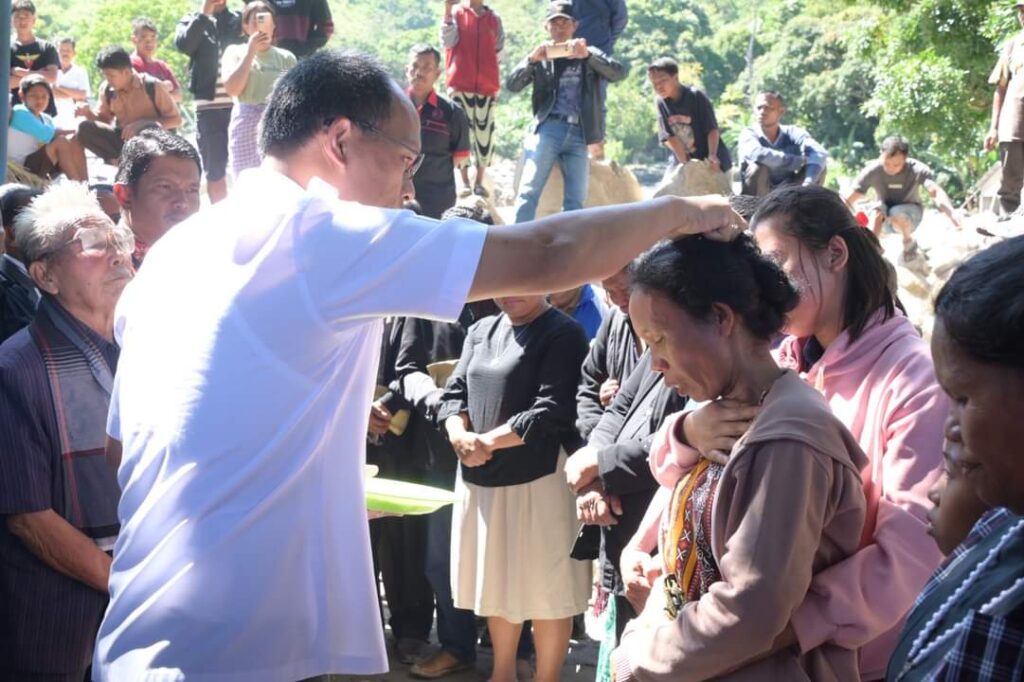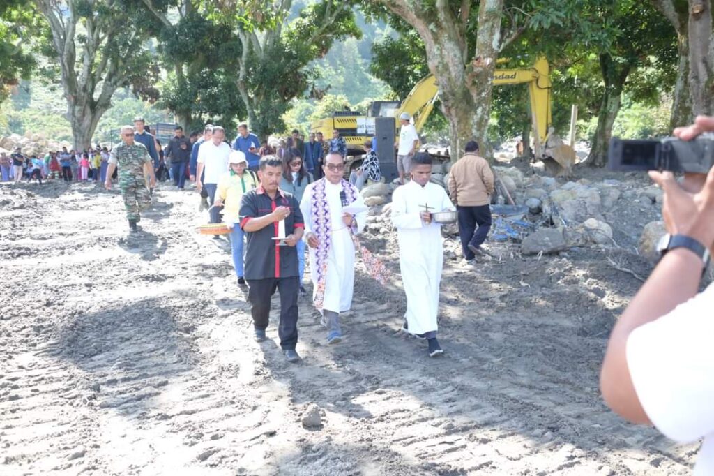 Pastor Mansuetus SVD dalam ibadah menyampaikan kiranya Tuhan memberikan penghiburan kepada seluruh keluarga korban dan masyarakat yang terdampak bencana.
