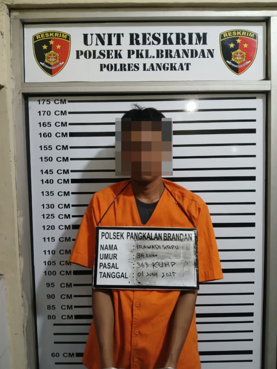 Seorang pria berinisial, Iswandi Sitepu, (34) warga Gang Sri Mulyo Desa Lubuk Kasih Kecamatan Brandan Barat, Kabupaten Langkat akhirnya berhasil di Tangkap unit Opsnal Reskrim Polsek Pangkalan Brandan atas dugaan tindak pidana pencurian sepeda motor (curanmor), Minggu (1/6/2025).