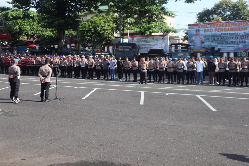Kepolisian Daerah Maluku Utara menyiagakan ratusan personel guna menjaga kondusifitas pelaksanaan pemungutan suara Pilkada serentak Tahun 2024 yang dilaksanakan pada Rabu, 27 November 2024.