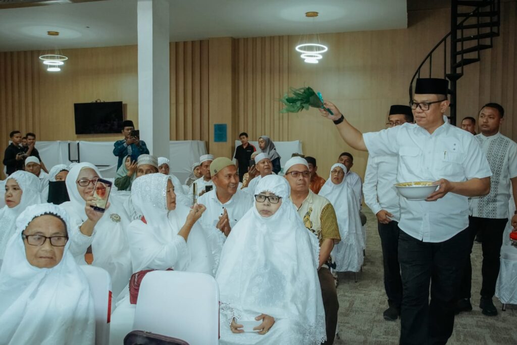 Kompasnews.co.id- Sumatera Utara, Batu Bara- Jelang keberangkatan ke Tanah Suci Mekkah, sebanyak 249 jemaah calon haji asal Kabupaten Batu Bara Kloter 11 mengikuti tradisi tepung tawar, di Aula Kantor Bupati Batu Bara, Kecamatan Lima Puluh, Kamis (16/05/2024).
