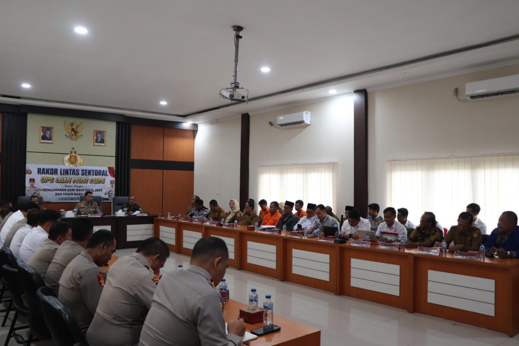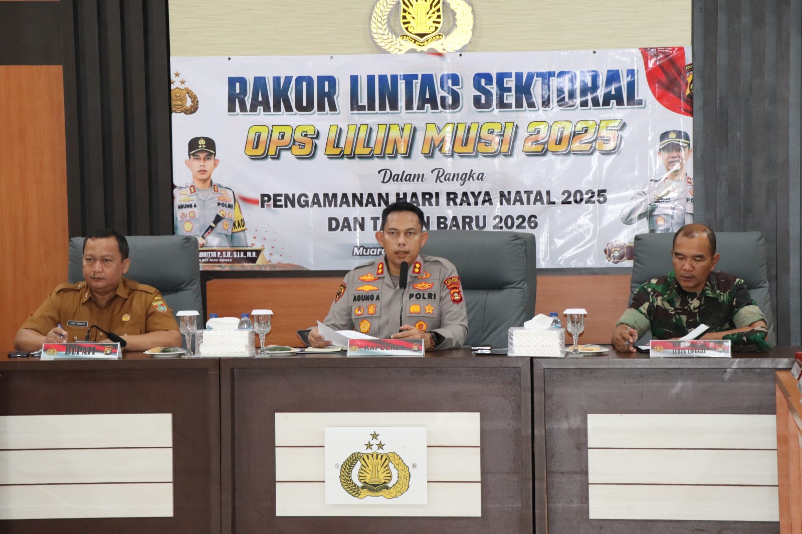 MUSI RAWAS – Dalam rangka pengamanan perayaan Hari Raya Natal Tahun 2025 dan Tahun Baru 2026 (Nataru), Polres Musi Rawas bersama Forum Koordinasi Pimpinan Daerah (Forkopimda) menggelar Rapat Koordinasi Lintas Sektoral Operasi Lilin Musi Rawas Tahun 2025, bertempat di Ruang Pesat Gatra Polres Musi Rawas, Senin (15/12/2025).