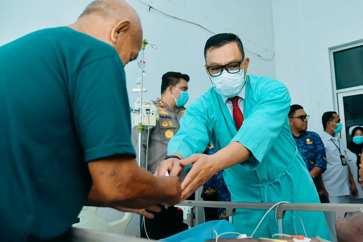 Pj. Bupati Nizhamul juga mengatakan akan menindaklanjuti perawatan terhadap Hermansyah dengan merujuk ke rumah sakit yang bisa menangani luka bakar korban.