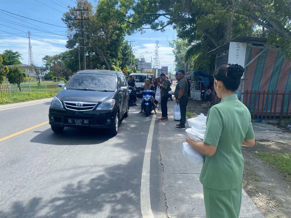 Dalam kegiatan yang berlangsung tertib ini, personel Subdenpom 1/5-3 Pangkalan Brandan membagikan puluhan paket makanan siap saji kepada para pengendara yang melintas serta warga di sekitar Subdenpom 1/5-3 Pangkalan Brandan.