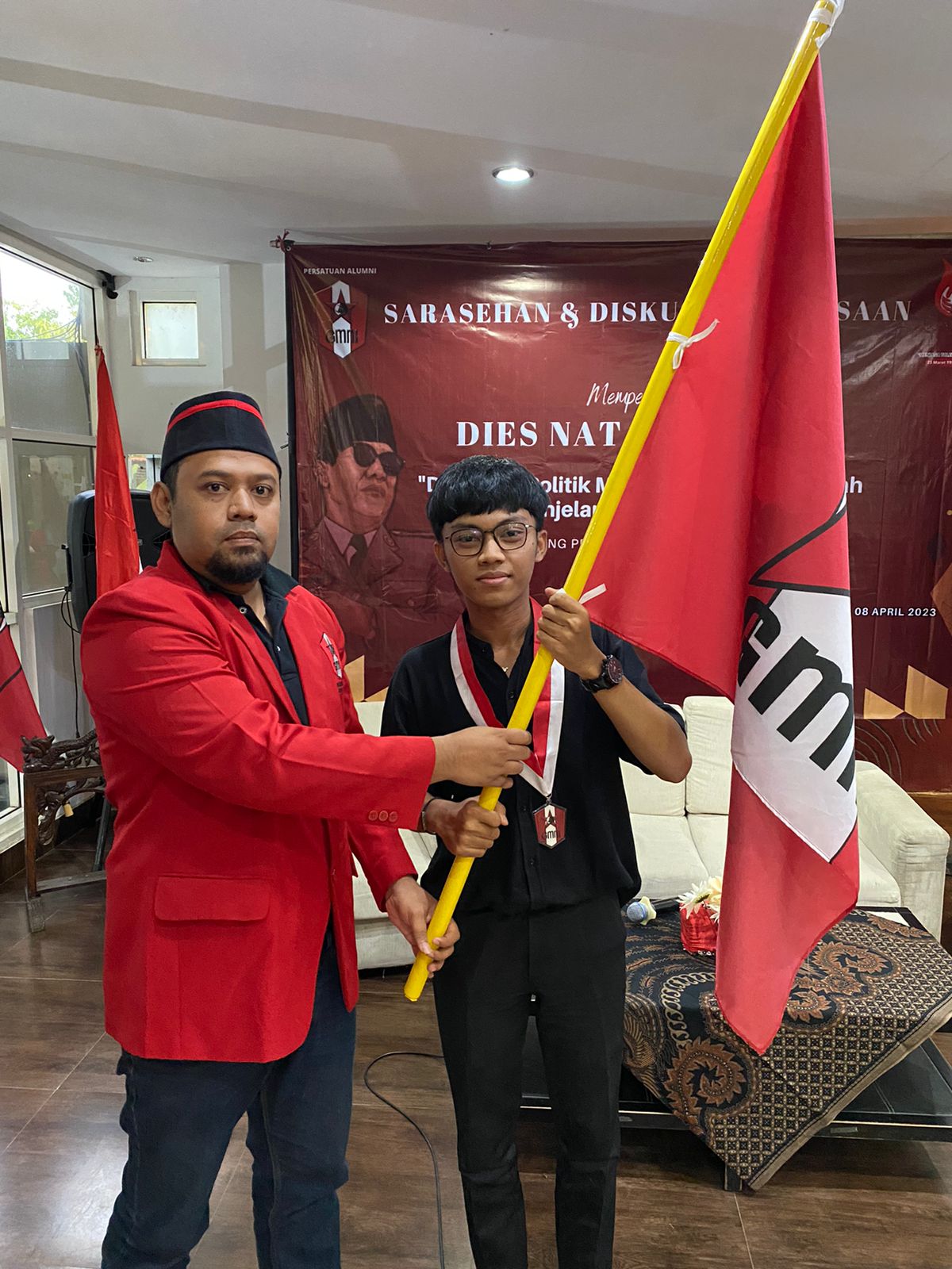 Pada acara tersebut, secara simbolis, Ketua PA GMNI Pati, Sigit Pamungkas, memberikan bendera pataka GMNI kepada Ronaldi Subastian sebagai bentuk distribusi tanggung jawab sebagai kader marhenis.