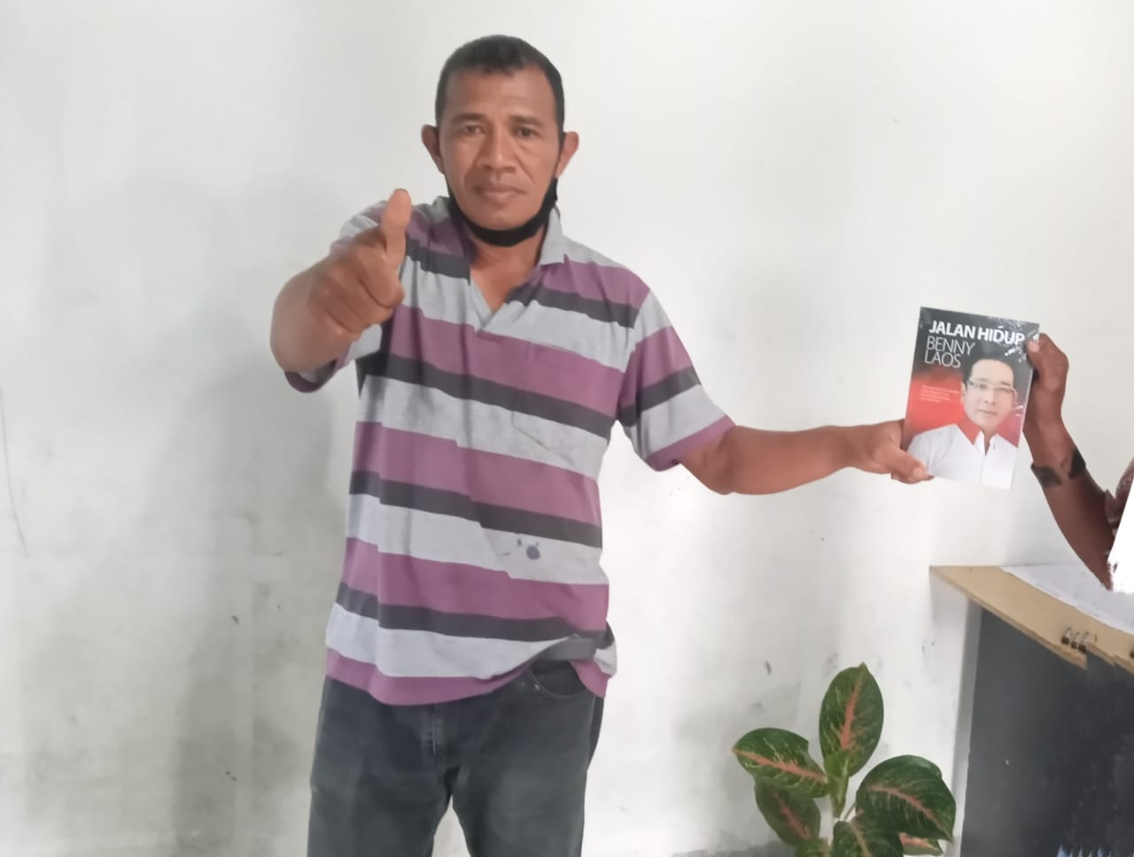 Hal ini terlihat jelas kades Wayamiga Hudawi Kader Samual, menerima dan memegang sebuah buku yang di serahkan kepadanya terpampar wajah Benny Laos selaku calon gubernur Maluku Utara, itu sambil mengangkat tangan jempolnya diduga sebagai isyarat siap mendukung dan memenangkan Cagub tersebut.
