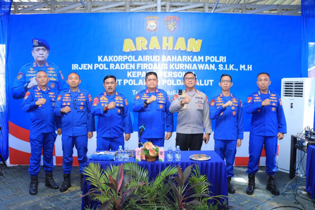 Setelah prosesi penyambutan, Kakorpolairud memberikan pengarahan kepada seluruh personel Ditpolairud Polda Malut.