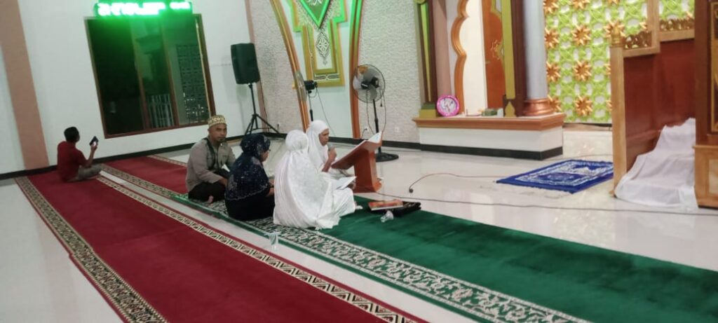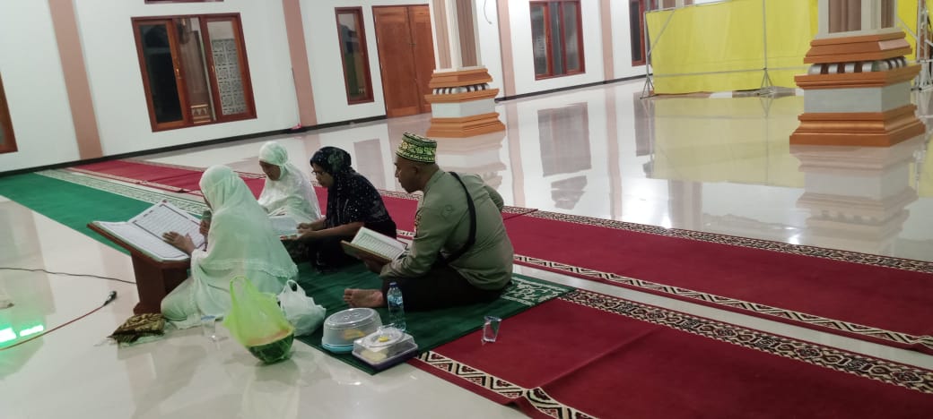Kanit Binmas Polsek Obi melaksanakan Giat Bulan Suci Ramadhan dengan cara Memakmurkan Masjid Nurul Hikmah Dusun Turi Desa Laiwui dengan melakukan, Tadarus bersama Majelis talim desa Laiwui Kecamatan Obi.