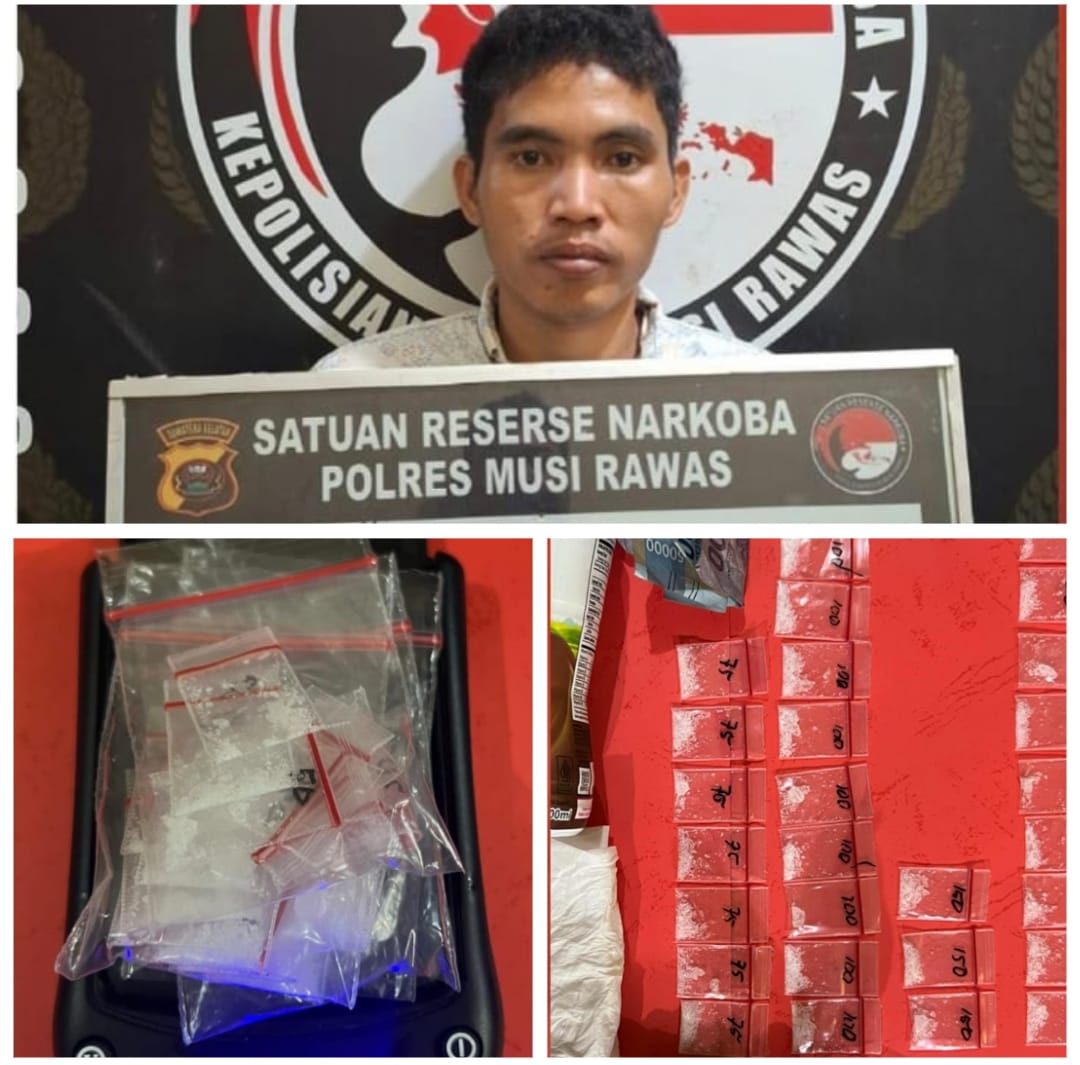 MUSI RAWAS-DD alias HJ (29), warga Desa Babat, Kecamatan STL Ulu Terawas, Kabupaten Musi Rawas (Mura), ditangkap “Eagle Squad” Satresnarkoba Polres Mura, di Jalan Lintas, tepatnya di Desa Babat, Kecamatan STL Ulu Terawas, Kabupaten Mura, sekitar pukul 10.30 WIB, Kamis (27/2/2025).