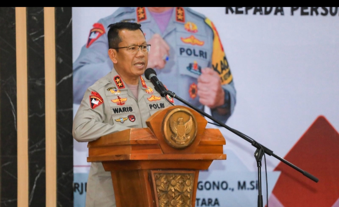 Kepala Kepolisian Daerah Maluku Utara Irjen Pol. Drs. Waris Agono, M.Si., melakukan tatap muka dan memberikan arahan kepada personel Polres Pulau Morotai sebagai upaya menguatkan jati diri Polri sebagai pelindung, pengayom dan pelayan masyarakat yang berlangsung di Aula Kantor Bupati Pulau Morotai, pada Rabu (25/6).