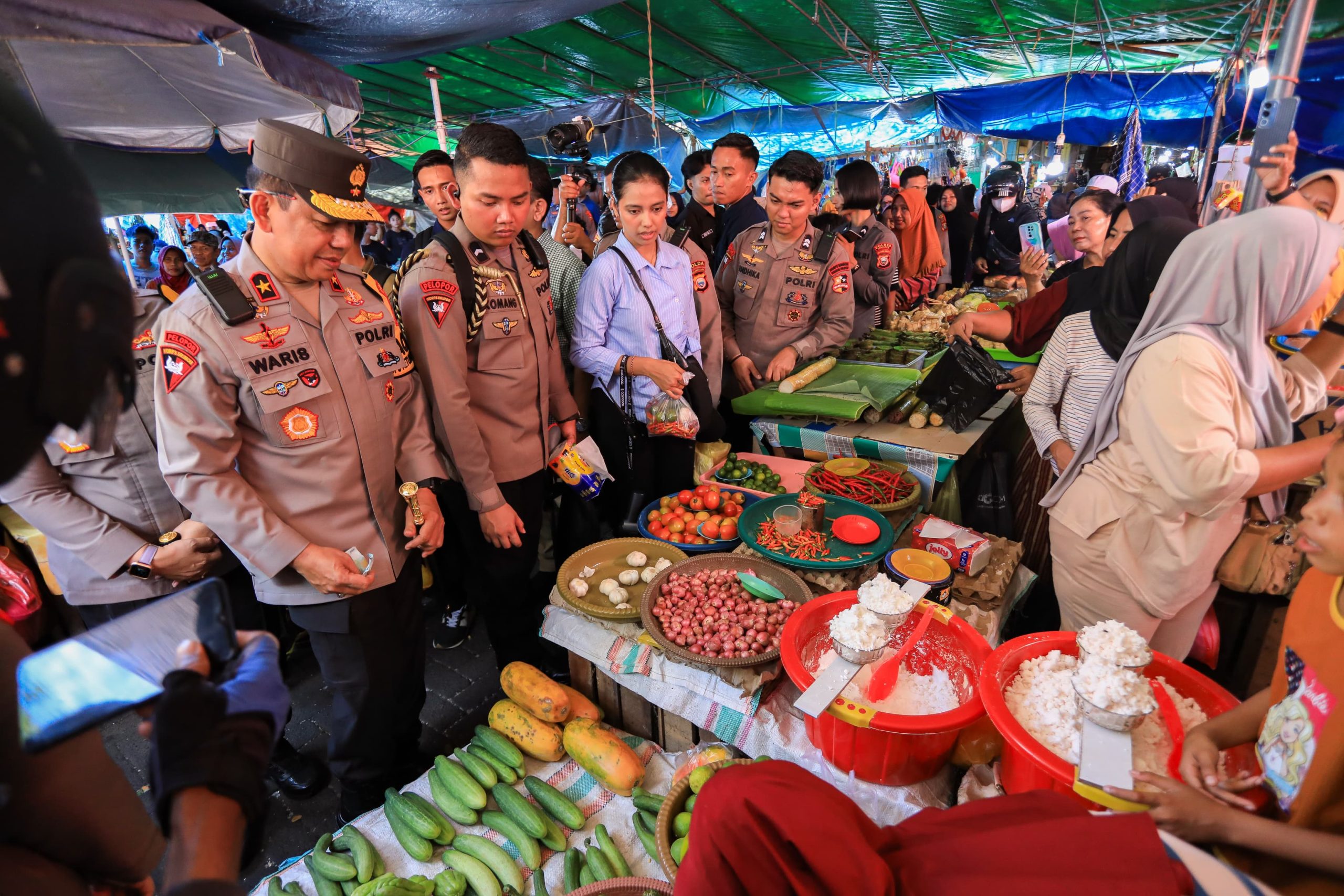 Kapolda Maluku Utara Brigjen Pol Drs. Waris Agono, M.Si., melakukan kunjungan ke Pasar Higienis yang terletak di Kelurahan Gamalama, Kecamatan Ternate Tengah, pada Kamis (27/3/2025).