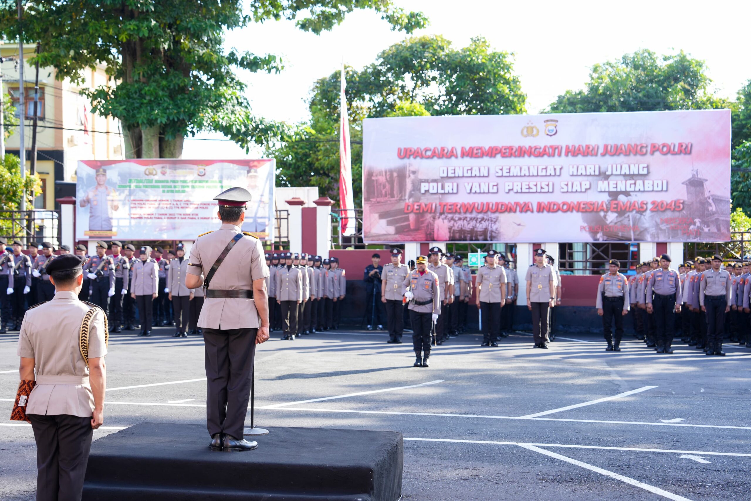 Polda Maluku Utara menggelar upacara peringatan Hari Juang Polri yang ke-79 dengan tema “Semangat Hari Juang Polri yang Presisi Siap Mengabdi Demi Terwujudnya Indonesia Emas 2045” pada Rabu (21/8/2024).