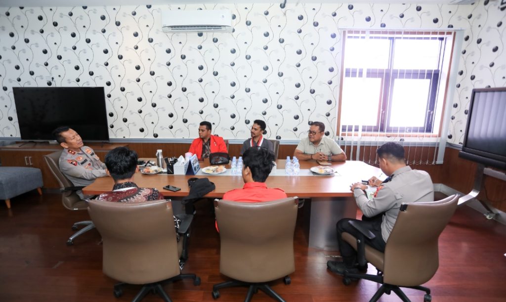Humas Polri – Kapolda Maluku Utara, Irjen Pol. Drs. Waris Agono M.Si, menerima Audiensi dari Dewan Pimpinan Daerah Gerakan Mahasiswa Nasional Indonesia (GMNI) Maluku Utara, yang berlangsung di Ruang Kerja Kapolda Maluku Utara, Rabu (16/4/2025).